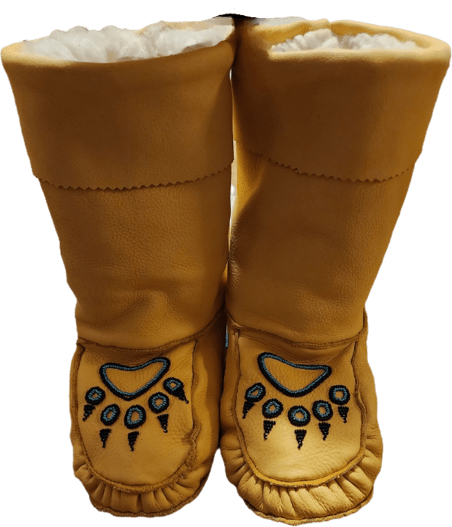 Walk with Balance is a pair of deer hide mukluks crafted for my daughter, Lainey. The design features bear paw symbols, which represent courage, resilience, and strength. This theme reflects the idea of navigating through life with balance and fearlessness while acknowledging that perfection is unattainable. Instead, the focus is on the importance of learning and personal growth throughout life’s journey with determination and bravery. Each step that she takes, whether it leads to success or a setback, becomes an opportunity to learn, adapt, and grow continuously throughout this lifelong journey. These mukluks are the beginning of a cherished family heirloom. Their story and meaning will be passed down to Lainey’s younger siblings to share with their future daughters or sons, to be carried forward through the generations yet to come, preserving not only the artistry but also the values, lessons, and cultural significance, ensuring our Indigenous legacy remains alive.