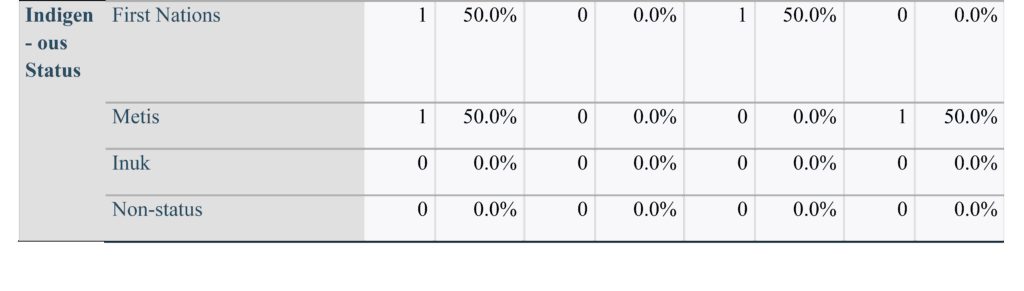Using mixed methods, data were collected through survey questionnaires and interviews, conducted via convenience sampling, in the community. Survey questionnaires made it possible to analyze quantitative data and convert it into numerical data. Interviews were conducted to understand participants’ perspectives and bring their suppositions and observations to light. The sample population for the research consisted of fifteen voluntary participants from The Pas, Manitoba, including Indigenous and non-Indigenous men and women aged 18 and above who have worked or are currently working in the community. Data collection involved recruiting participants from various sectors and conducting surveys using convenience and snowball sampling. The research focused on the societal and management structure of the workplaces and their success in preventing and correcting sexual harassment. The questionnaire included demographic and multiple-choice questions regarding workplace information, procedures, and safety. Furthermore, the three interviews consisted of open-ended questions concerning feelings of safety in the workplace and concluded with recommendations for effective change. Sample questions from the survey ranked whether employees felt confident reporting sexual misconduct, if employers teach tools, skills, or training about harassment, and feelings of safety at work. Data analysis makes it possible to outline how relationships between variables are conceptualized using different multivariate models and methods. However, with limited data, it is challenging to identify statistical relationships in the dataset. As a result of a smaller sample size, I used qualitative descriptive statistics to analyze data.
