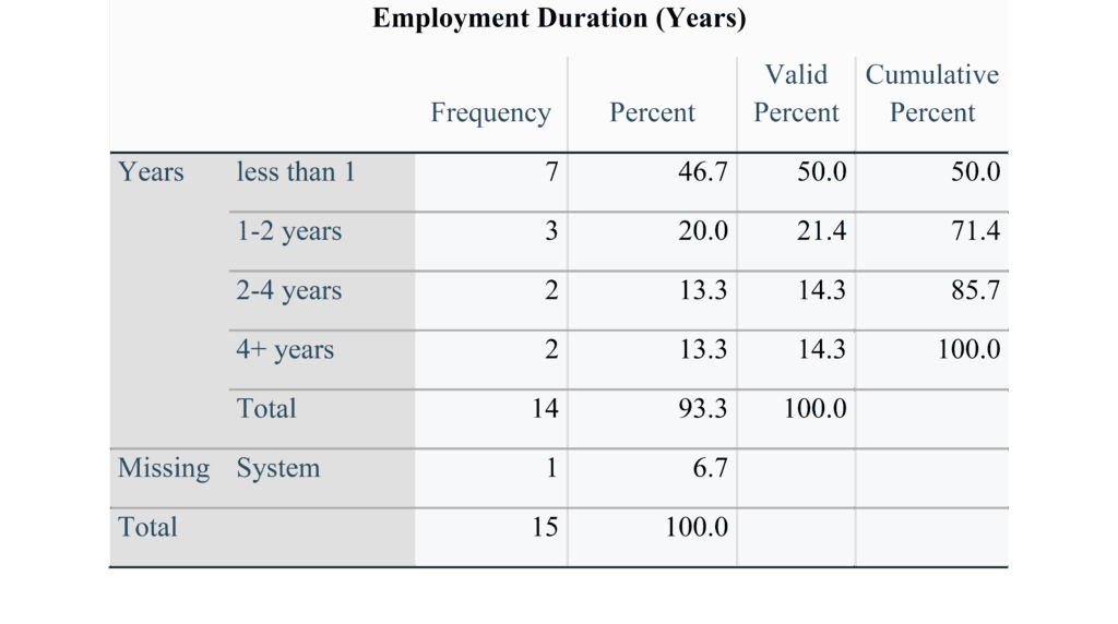 Table 3: Employment Duration