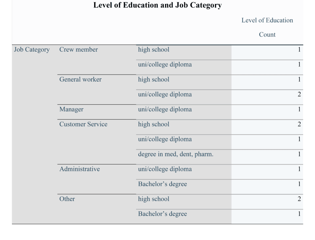 Table 2: Level of Education and Job Category