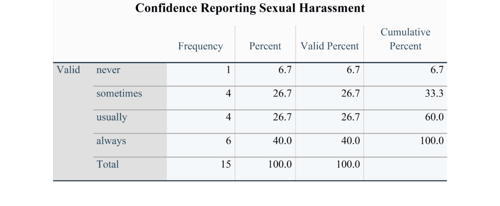 Table 4: Confidence in Reporting Sexual Harassment